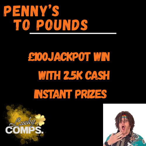 CHANCE TO WIN £100 END PRIZE WITH YOUR TICKET ON OUR LIVE DRAW. THIS COMP ALSO HAS OVER 2.5K WORTH OF INSTANT CASH WINS.